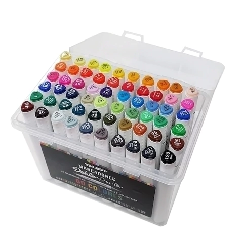 ¡Haz que tu creatividad fluya sin límites con los Marcadores Doble Punta x60 Unidades Talbot! Este set completo de 60 marcadores ofrece una amplia gama de colores vibrantes para todos tus proyectos artísticos, escolares y profesionales. Con punta fina y gruesa, tendrás versatilidad para detalles finos o trazos más amplios. 🎨🖍️